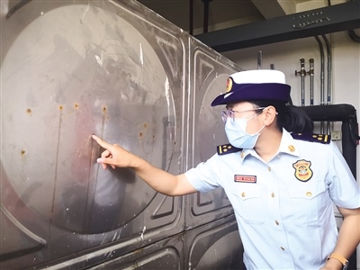 消防監(jiān)督員檢查發(fā)現(xiàn)該小區(qū)高位水箱沙眼較多,無(wú)法正常使用。