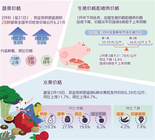 東風和煦,冰雪消融,大江南北到處洋溢著新春的氣息。春節(jié)長假期間,全國豬肉果蔬價格怎樣呢?節(jié)后走勢如何?就此,記者采訪了業(yè)內(nèi)專家。
