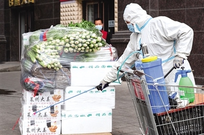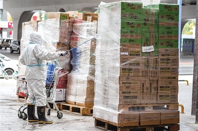 據(jù)了解,家家悅確保每日運(yùn)送新鮮瓜果外,倉庫里還備齊了日用品、零食等居民生活必備品。每天一早,倉庫工作人員會(huì)按照線下各實(shí)體店所需進(jìn)行選品,分揀員認(rèn)真分揀,運(yùn)輸人員按時(shí)送達(dá)。商品抵達(dá)實(shí)體店后,實(shí)體店工作人員對(duì)運(yùn)貨車輛及所運(yùn)物品進(jìn)行消殺,再上架供超市工作人員按照訂單進(jìn)行分包,收銀臺(tái)工作人員掃碼打印出支付賬單,由配送員送到居民手中。
