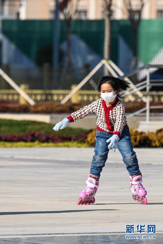 11月17日,小朋友在呼和浩特市新華廣場練習(xí)輪滑。新華社記者 王澤聰 攝