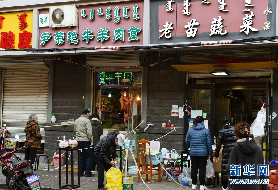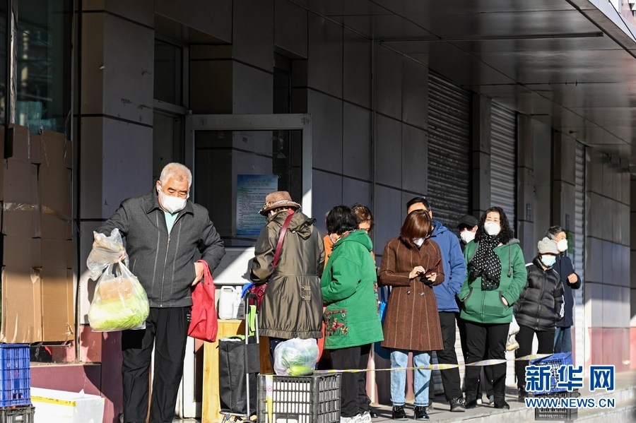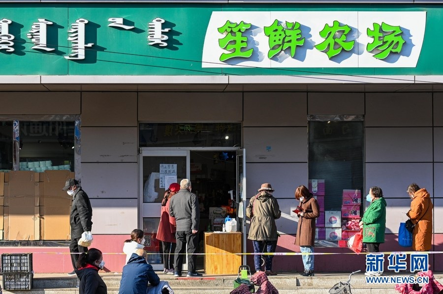 11月17日,市民在呼和浩特市新城區(qū)的商店排隊(duì)購物。新華社記者 王澤聰 攝