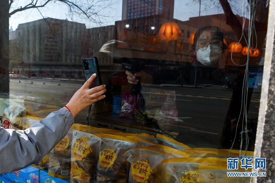 11月17日,市民在呼和浩特市新城區(qū)一家商店進(jìn)行無接觸購物。新華社記者 王澤聰 攝