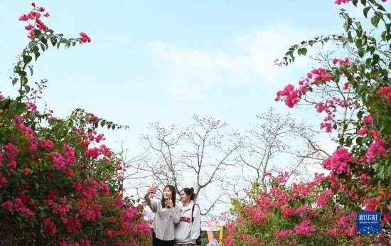 眼下正值海南昌江黎族自治縣木棉花盛開時節(jié),不少游客前來踏青賞花。