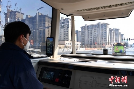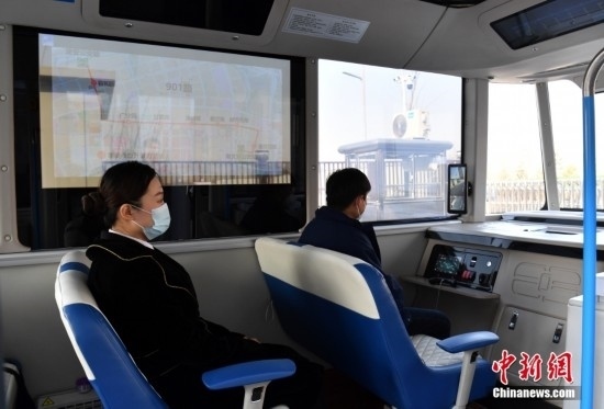 2月22日,智能網(wǎng)聯(lián)巴士901線測試車輛??抗徽九_(tái)。雄安新區(qū)的智能網(wǎng)聯(lián)巴士近期正在進(jìn)行投入運(yùn)營前的道路測試,該巴士配備了超高感度攝像頭、超聲波雷達(dá)、激光雷達(dá)、毫米波雷達(dá)等感知設(shè)備,組成了車輛的“眼睛”。車輛可自主識別紅綠燈、道路提示牌和車道標(biāo)線等,做出跟車、超車、停車等動(dòng)作。中新社記者 韓冰 攝