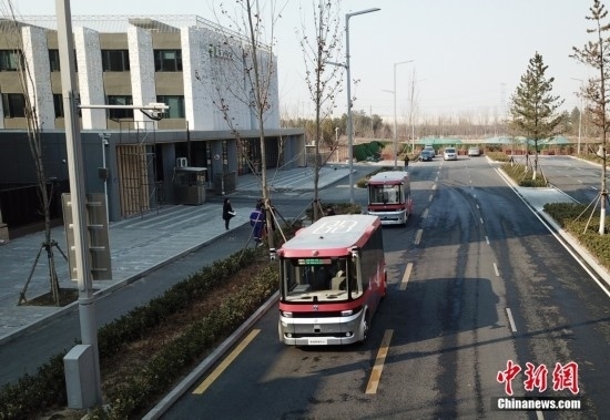 2月22日,智能網(wǎng)聯(lián)巴士901線測試車輛與普通城市公交車駛出公交站臺(tái)。雄安新區(qū)的智能網(wǎng)聯(lián)巴士近期正在進(jìn)行投入運(yùn)營前的道路測試,該巴士配備了超高感度攝像頭、超聲波雷達(dá)、激光雷達(dá)、毫米波雷達(dá)等感知設(shè)備,組成了車輛的“眼睛”。車輛可自主識別紅綠燈、道路提示牌和車道標(biāo)線等,做出跟車、超車、停車等動(dòng)作。中新社記者 韓冰 攝
