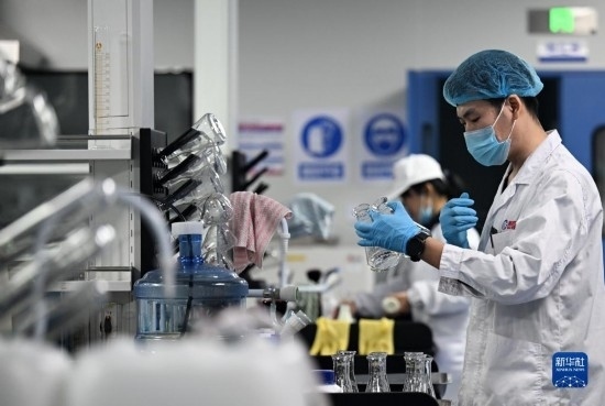 在天津海河乳品有限公司創(chuàng)新研發(fā)中心,工作人員在對產(chǎn)品進(jìn)行檢測(2月20日攝)。