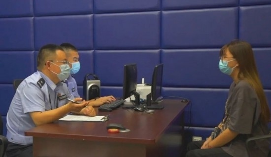 圖為亢杰(右)審查境外遣返人員。