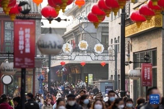 當(dāng)日,北京前門(mén)大街商圈游人如織,眾多市民游客在這里參觀游覽。