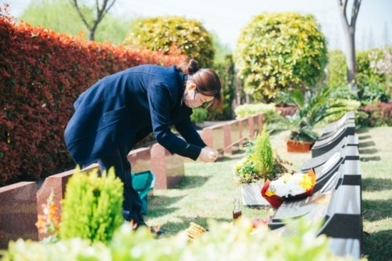 對于一些不能到場緬懷先人的逝者家屬,上海福壽園今年繼續(xù)提供“云祭掃”、“代客祭掃”服務。工作人員將在墓前轉達親人的問候,并完成擦拭墓碑、敬獻鮮花、鞠躬等儀式內容,結束后將現(xiàn)場照片傳達至逝者家屬。