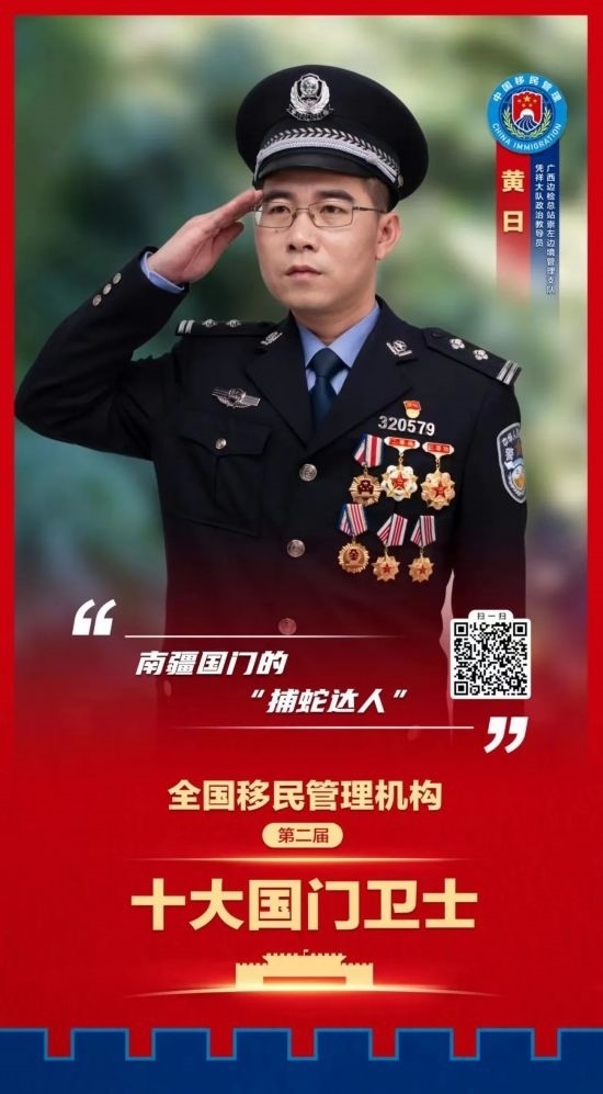 10名來自邊防檢查和邊境管理一線的移民管理警察被表彰為全國移民管理機構(gòu)第二屆十大國門衛(wèi)士,并榮記個人一等功。他們分別是: