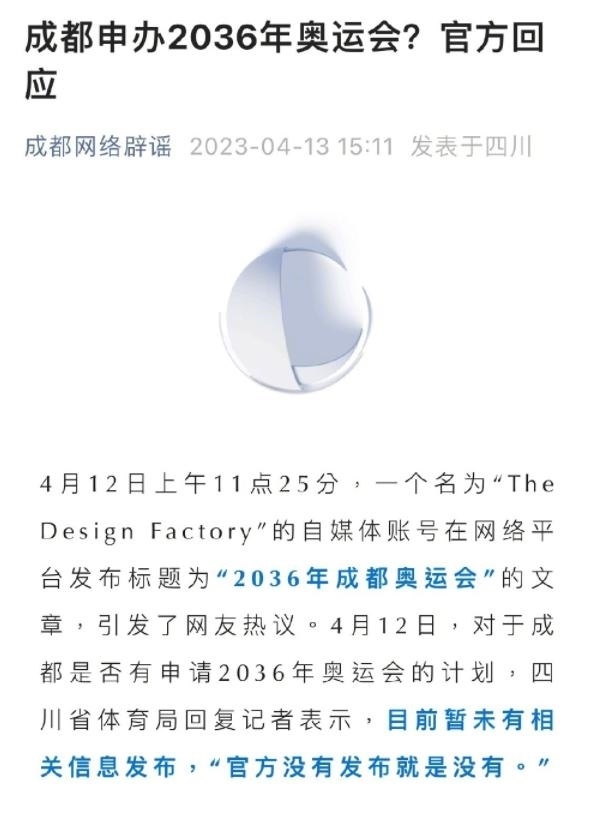 ·官方回應(yīng)成都申辦2036年奧運(yùn)會(huì):官網(wǎng)未發(fā)布就是沒(méi)有。