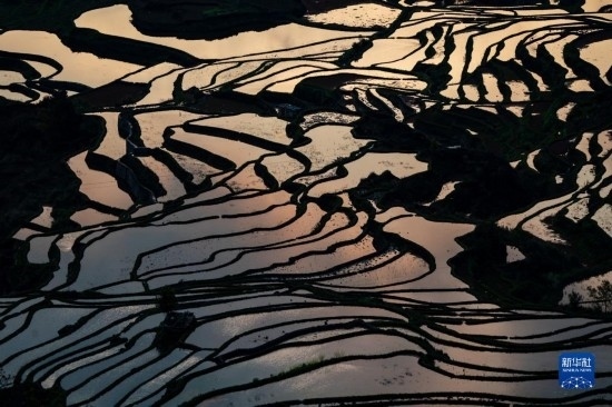 這是在云南省紅河哈尼族彝族自治州元陽縣拍攝的哈尼梯田美景(2023年3月16日攝)。