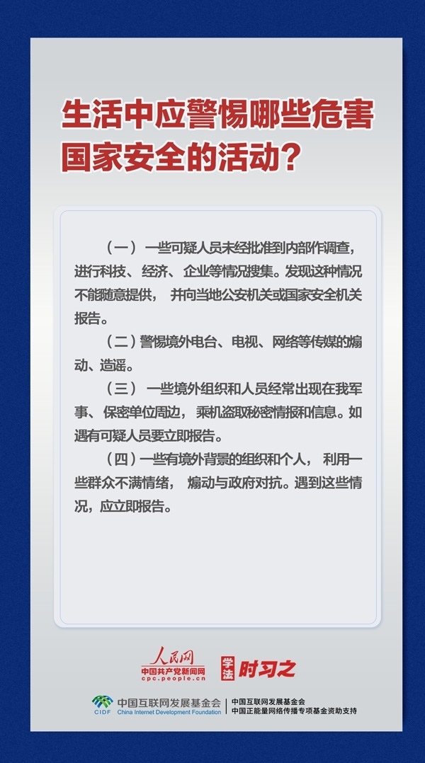 國(guó)家安全,共同守護(hù)。如有發(fā)現(xiàn)危害國(guó)家安全的行為和線索,請(qǐng)及時(shí)撥打國(guó)家安全機(jī)關(guān)舉報(bào)受理電話12339或登錄www.12339.gov.cn網(wǎng)站進(jìn)行舉報(bào)。