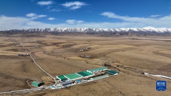 4月16日在青海省海北藏族自治州門源回族自治縣皇城蒙古族鄉(xiāng)拍攝的養(yǎng)殖畜棚(無(wú)人機(jī)照片)。