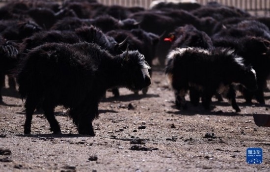 4月14日,在青海省海北藏族自治州剛察縣泉吉鄉(xiāng)寧夏村,牧民拉寶在自家羊圈中。
