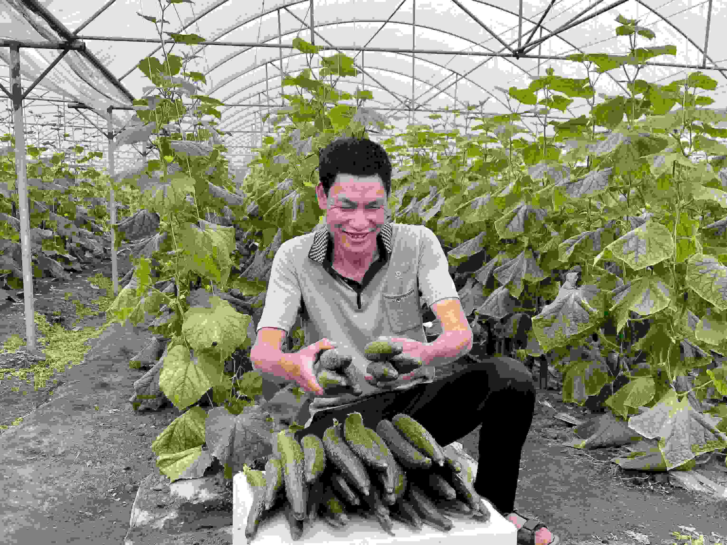 在北海市銀海區(qū)福成鎮(zhèn)三合口村的一個(gè)大棚種植基地里,邱福寧家種植的黃瓜已經(jīng)成熟,剛采摘完一籃子黃瓜的他,臉上洋溢著豐收的喜悅。