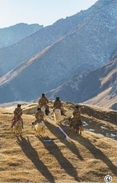 圖④在昆侖山腹地,新疆生產(chǎn)建設(shè)兵團(tuán)第三師圖木舒克市葉城二牧場(chǎng)三連職工騎著牦牛行進(jìn)在巡邊路上。