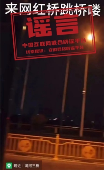 真相:近日,某網(wǎng)民發(fā)布以安徽蚌埠懷遠(yuǎn)渦河三橋?yàn)楸尘?、配有“來網(wǎng)紅橋跳橋嘍”文字的視頻,并在評論區(qū)發(fā)布“昨晚上12點(diǎn)又一個(gè)跳橋的”等言論。經(jīng)當(dāng)?shù)鼐W(wǎng)安和公安核查、求證,近日懷遠(yuǎn)渦河三橋并未發(fā)生過跳橋事件,該信息確系謠言。視頻發(fā)布人梁某新為尋求刺激、博取流量,故意捏造虛假信息并在抖音平臺上傳播。屬地公安機(jī)關(guān)已對梁某新予以行政拘留5日處罰,其發(fā)布謠言的抖音賬號被依法注銷。(來源:“公安部網(wǎng)安局”微信公眾號、安徽網(wǎng)絡(luò)辟謠平臺)