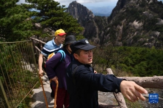 4月20日,秦志平在黃山風(fēng)景區(qū)光明頂附近進(jìn)行路段巡查。