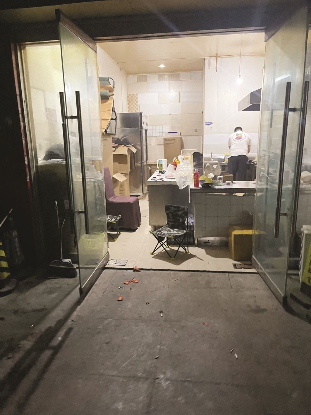 記者當(dāng)天夜里來到了王女士所說的“寫字樓”——位于揚州市望月路與百祥路交會口的“廣華星都會”。記者跟著一位外賣小哥一起走進大樓內(nèi)部,扶梯早已停用,樓內(nèi)破敗不堪,還沒有上到二樓,一股濃烈的臭味就已經(jīng)撲鼻而來。凌晨兩點,二樓依然燈火通明。這里也分布著大大小小七八家外賣店,大部分還都在營業(yè)中。除了環(huán)境臟亂差以外,記者找到了臭味的源頭——樓層中心的廁所,整層樓彌漫的味道讓人“上頭”。圍繞著這個廁所分布的外賣店,還在認(rèn)真地經(jīng)營著“美食”。記者打開外賣平臺,發(fā)現(xiàn)廁所正對面的“××臭豆腐”月銷訂單2000+。
