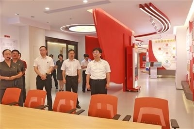 廣西高院黨組書記、院長黃海龍(右一)在桂林中院黨建文化活動中心調(diào)研。