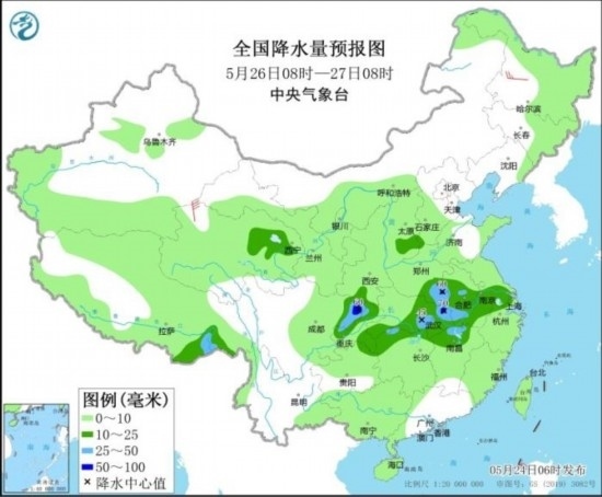 全國降水量預報圖(5月25日08時-26日08時)
