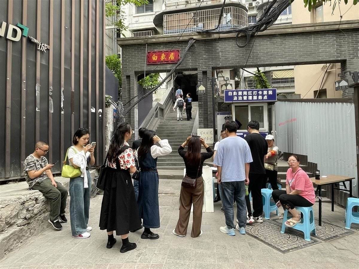 情況說明還顯示,因外來游客太多,居民不堪其擾,5月23日下午,小區(qū)居民自發(fā)組織“居民自治小組”在白象居大門設(shè)置“居民住宅,謝絕參觀”字牌進行訪客準(zhǔn)入登記,自發(fā)維護白象居居民樓內(nèi)部秩序管理,維護小區(qū)安寧。目前,白象街社區(qū)居委會已介入居民自治小組的協(xié)調(diào)工作,力爭在游客參觀和居民訴求之間找到一個平衡點。