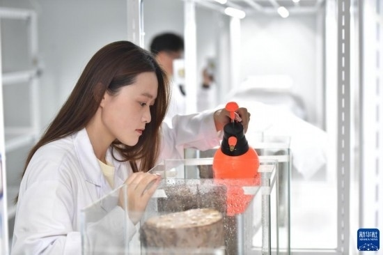 5月31日,在沈陽工學(xué)院遼寧省危險性林業(yè)有害生物防控重點(diǎn)實(shí)驗(yàn)室,生命工程學(xué)院同學(xué)進(jìn)行接種與栽培實(shí)驗(yàn)。