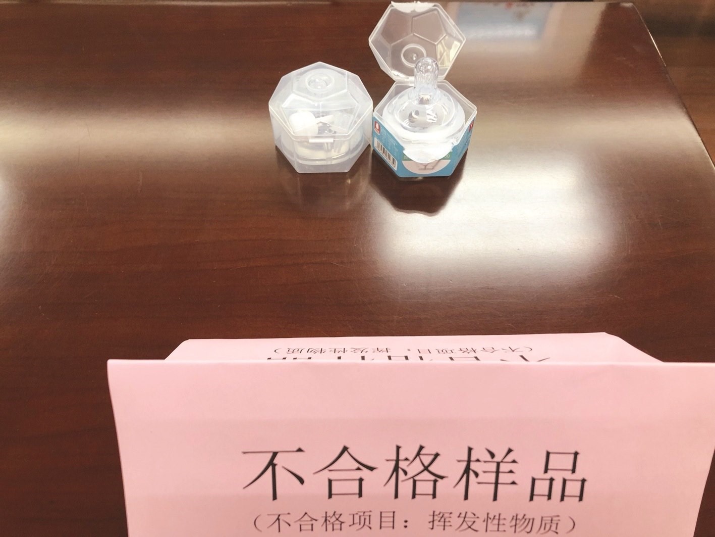 此次市場監(jiān)管部門還抽查了10批次奶嘴產品,經檢驗,9批次合格,不合格1批次,不合格項目為揮發(fā)性物質。