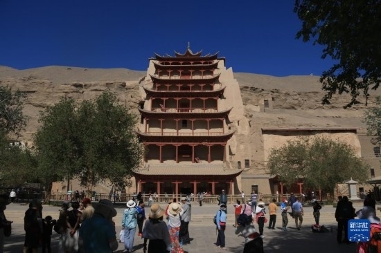 6月8日,游客在世界文化遺產(chǎn)地莫高窟參觀游覽。