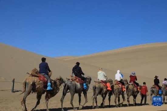 眼下正值甘肅省敦煌市旅游旺季,世界文化遺產(chǎn)莫高窟和沙漠奇觀鳴沙山月牙泉景區(qū)等地持續(xù)吸引游客前來參觀游覽。截至6月7日,敦煌市今年累計(jì)接待游客超135.5萬人次。