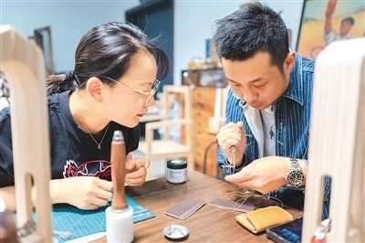 作為今年上海市為民辦實事項目“社會大美育課堂”的重要組成部分,今年上海市民藝術(shù)夜校春季班共開設(shè)教學(xué)點位123個、課程278門、招收學(xué)員6507人。夜校學(xué)習(xí)內(nèi)容包括傳統(tǒng)文化、時尚文化、非遺技藝、江南文化以及區(qū)域文化等。圖為5月8日,上海市寶山區(qū)淞南鎮(zhèn)社區(qū)文化活動中心,老師(右)正在指導(dǎo)學(xué)生皮具制作技巧。王 初攝(人民圖片)