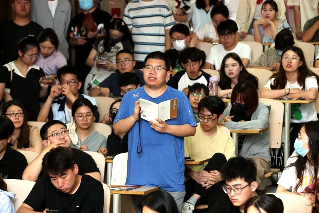 活動(dòng)中,盡管教室內(nèi)溫度很高,可沒有一名學(xué)生中途離開。一名站在過道處聽講的學(xué)生差點(diǎn)暈倒,工作人員把他扶到空調(diào)處休息了一會(huì),感覺好點(diǎn)后,他又繼續(xù)站在人群中聽講。