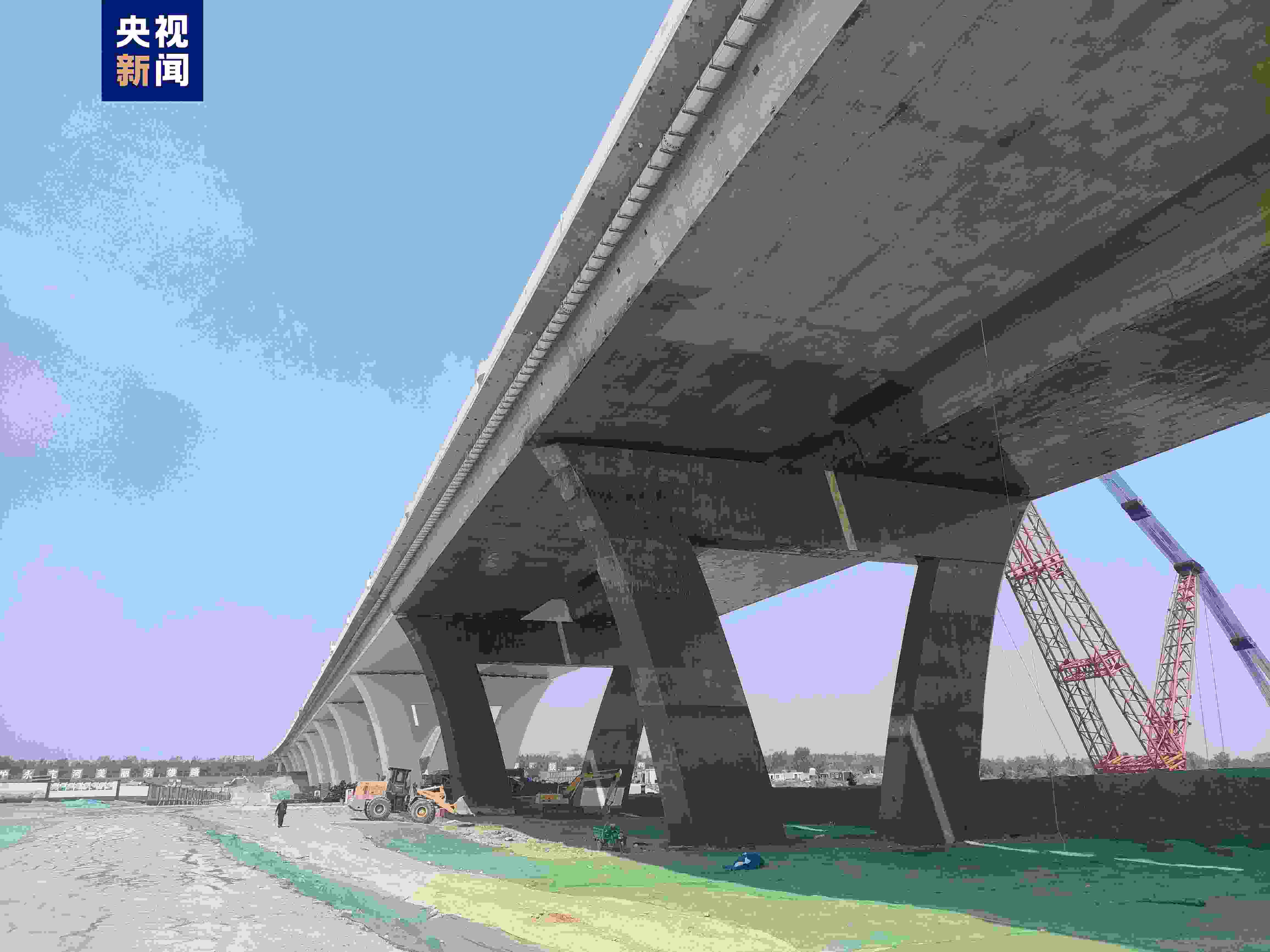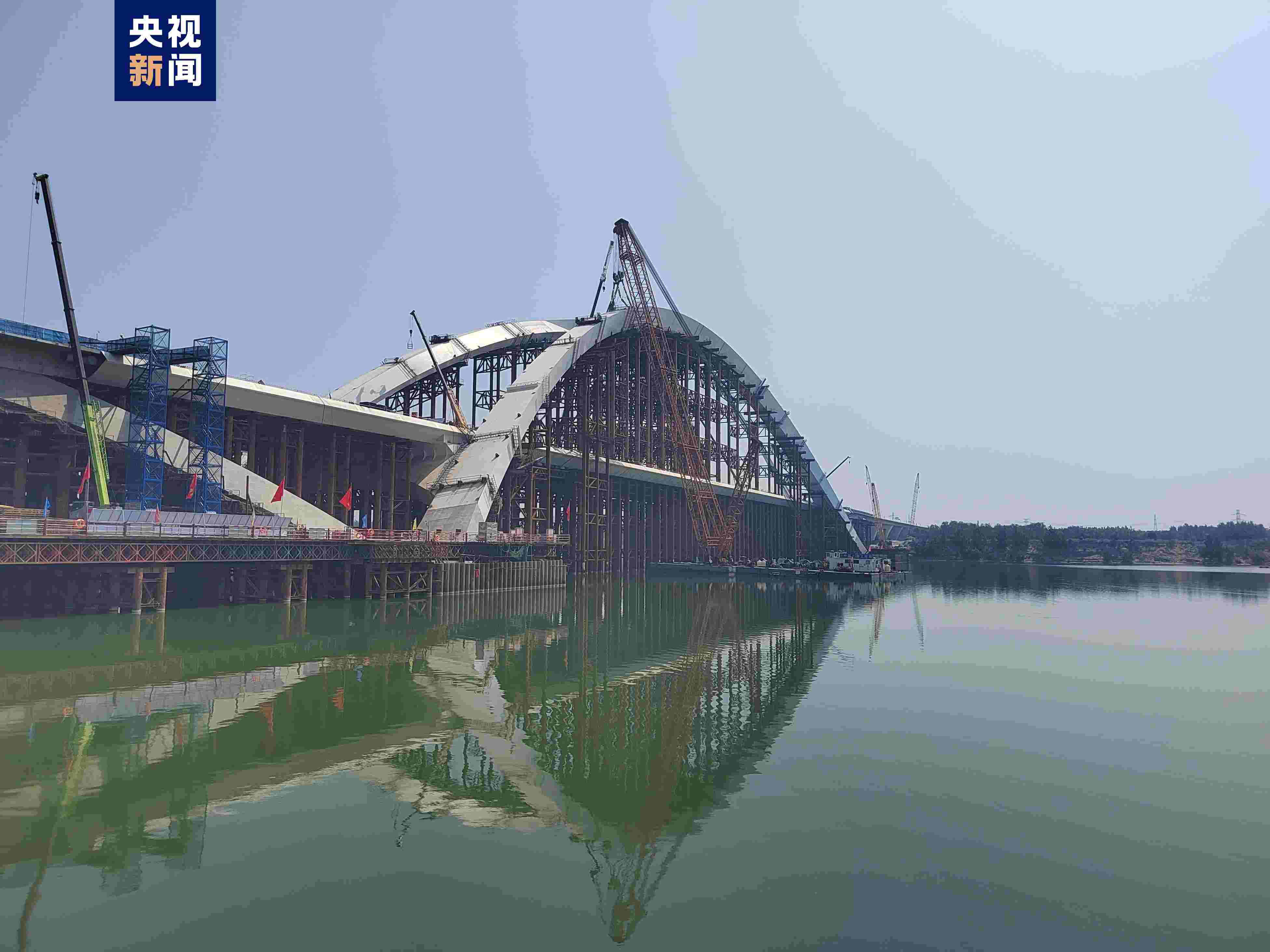 京雄大橋位于永定河與京雄高速“交匯點(diǎn)”,全長(zhǎng)1.62公里,其中東引橋410米、西引橋690米、主橋520米,主拱跨度達(dá)300米。大橋主梁寬度達(dá)48米,未來將承載京雄高速雙向八車道的車流。