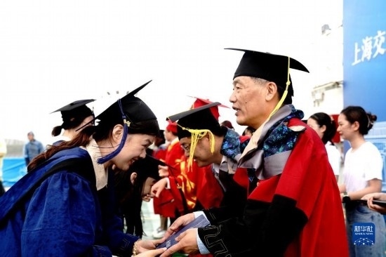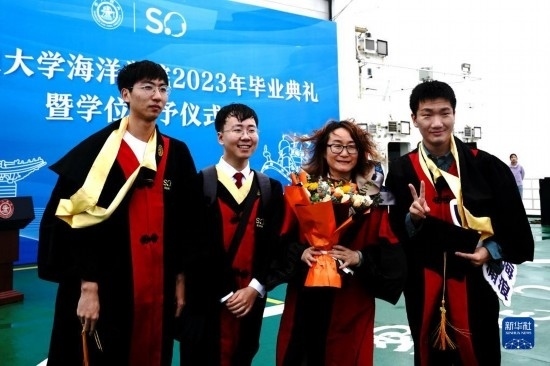 當(dāng)日,上海交通大學(xué)海洋學(xué)院2023年畢業(yè)典禮暨學(xué)位授予儀式在“雪龍2”號(hào)上舉行,70余名畢業(yè)生在甲板上與師長道別。“雪龍2”號(hào)是我國自主建造的第一艘極地科學(xué)考察破冰船。