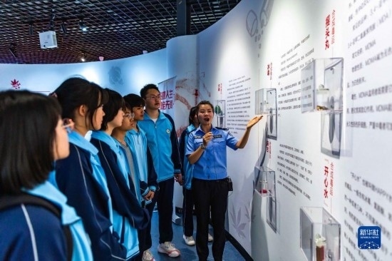 6月25日,民警在貴州省安順市禁毒宣傳教育基地為學生講解毒品相關知識。