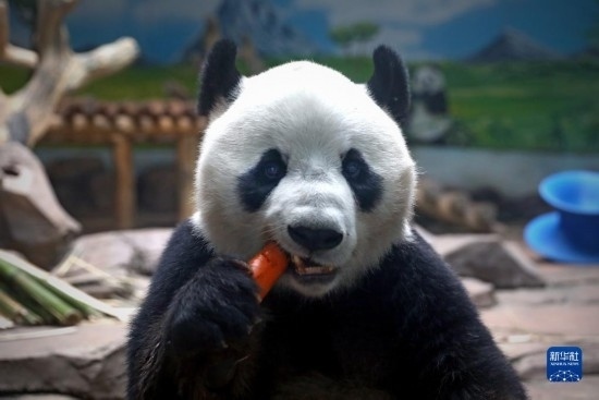 近日,遼寧地區(qū)持續(xù)高溫,在飼養(yǎng)員的精心照料下,鞍山動物園里的5歲大熊貓“剛剛”一邊吹著空調(diào)降溫,一邊享用新鮮竹子、水果、胡蘿卜、蜂蜜等,清涼度夏。