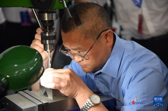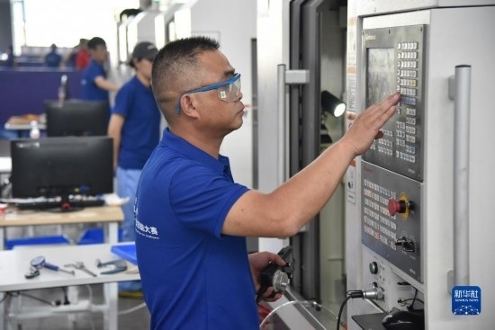 6月27日,參賽技術工人進行數控銑工技能比拼。