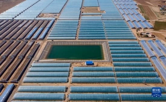 這是9月14日在吳忠市同心縣下馬關(guān)鎮(zhèn)拍攝的設(shè)施溫棚(無人機(jī)照片)。