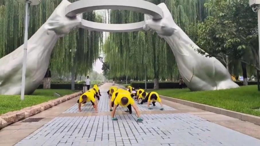 ·男子帶數(shù)十人團隊在公園鱷魚爬:可鍛煉全身,越來越多的人加入。