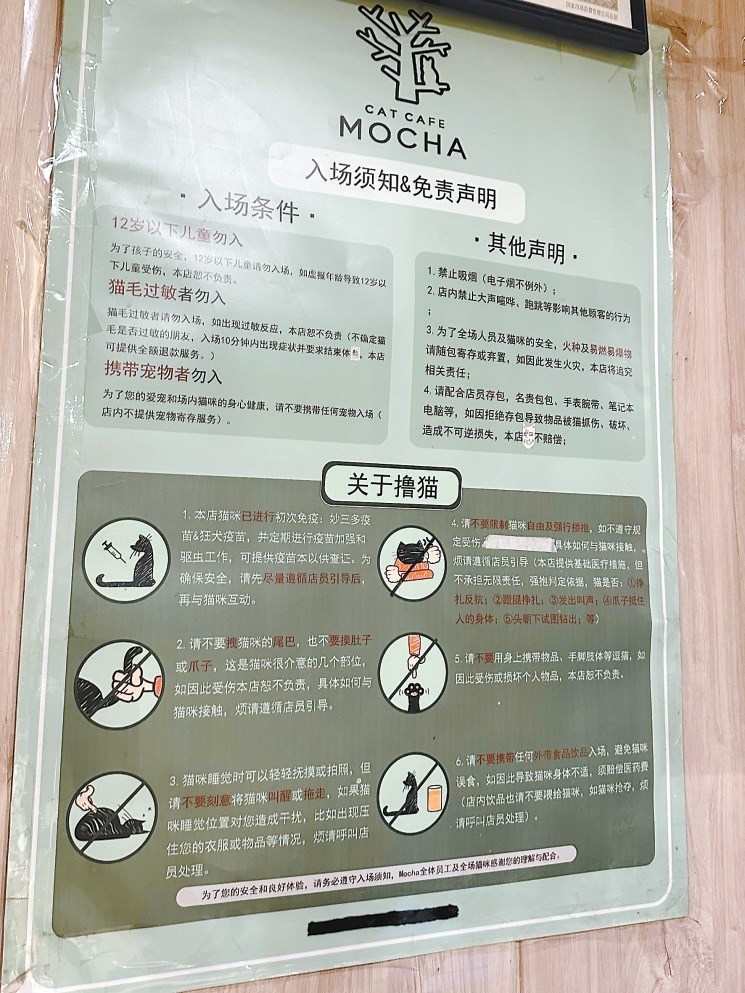 位于方家胡同的一家貓咪咖啡店,客人們興趣盎然地和貓咪玩耍,其中少有兒童的身影。店內(nèi)貼的“入場須知”中提到,“為了孩子的安全,12歲以下兒童請勿入場,如虛報年齡導(dǎo)致12歲以下兒童受傷,本店恕不負責(zé)?!?/p>