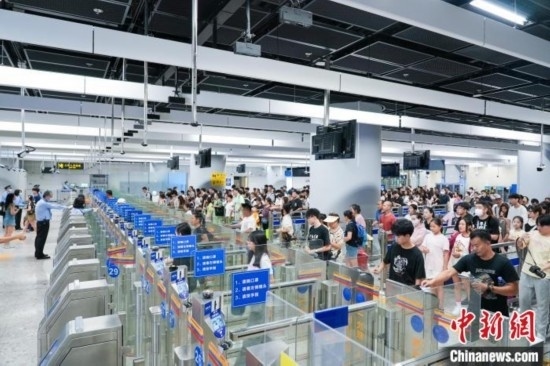 旅客通過口岸現(xiàn)場邊檢快捷通道快速通關(guān)(資料圖)。楊睿 攝