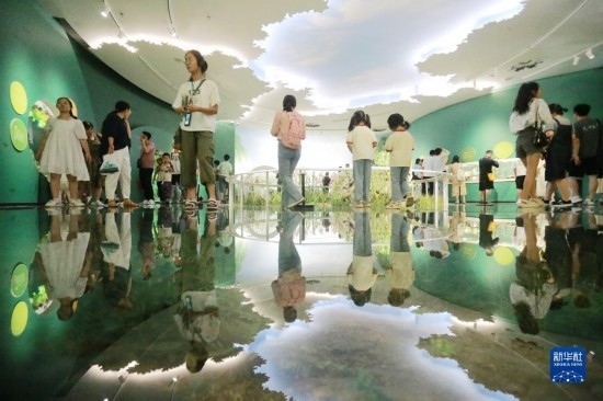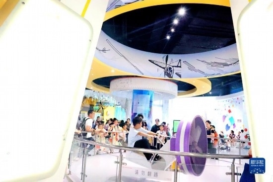 7月12日,小朋友在浙江省科技館里參觀(guān)體驗(yàn)。