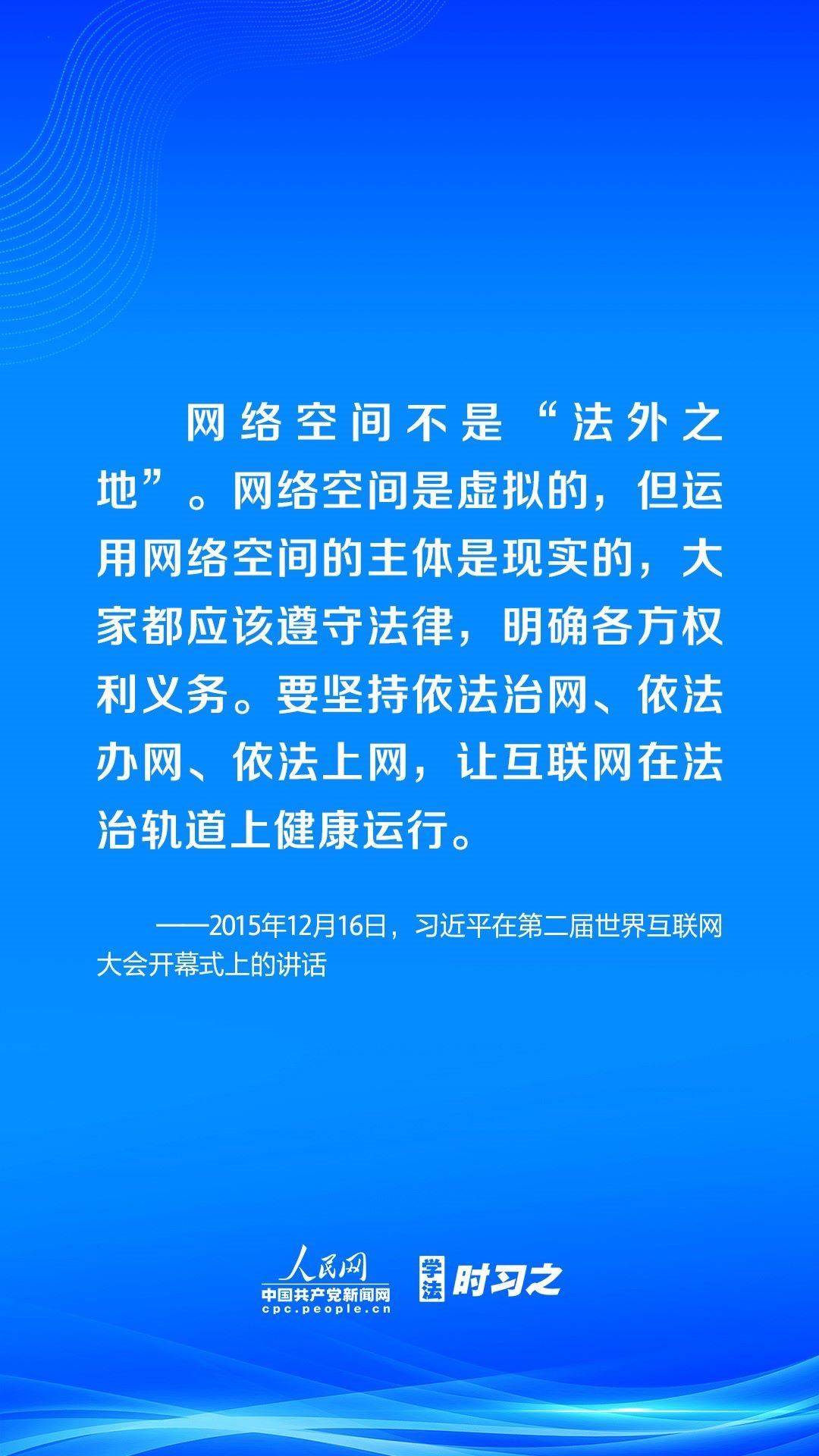 營(yíng)造風(fēng)清氣正的網(wǎng)絡(luò)空間,離不開(kāi)法治手段的保障。黨的十八大以來(lái),習(xí)近平總書(shū)記高度重視網(wǎng)絡(luò)法治工作,強(qiáng)調(diào)要堅(jiān)持依法治網(wǎng)、依法辦網(wǎng)、依法上網(wǎng),讓互聯(lián)網(wǎng)在法治軌道上健康運(yùn)行。