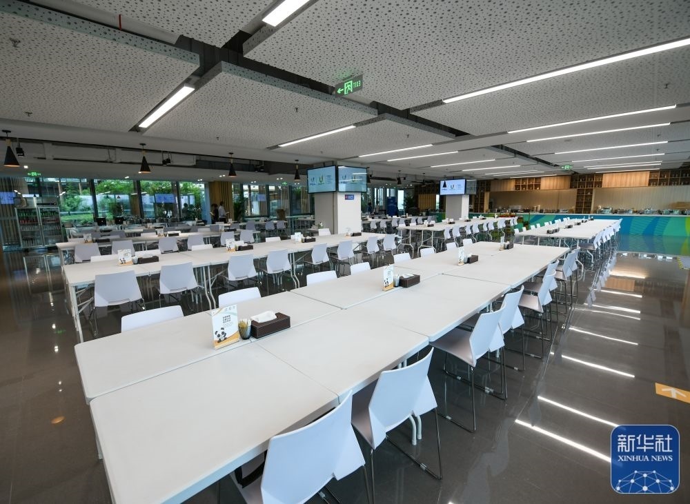 ↑這是7月13日拍攝的成都大運(yùn)會主媒體中心的媒體餐廳。新華社記者 王曦 攝