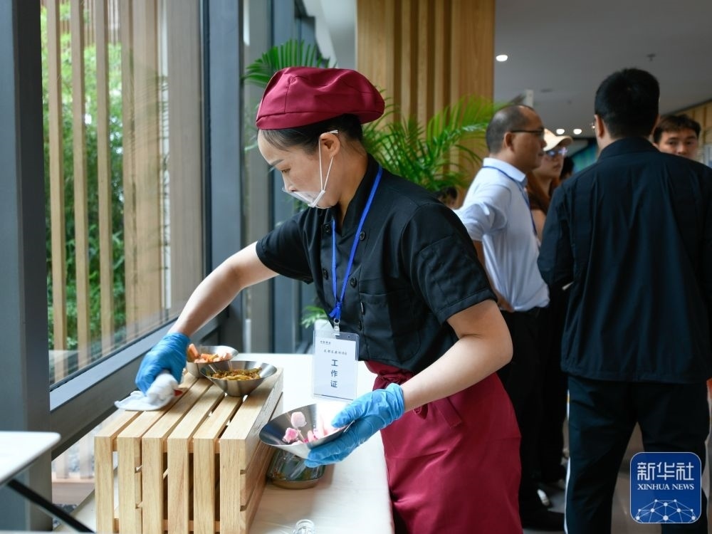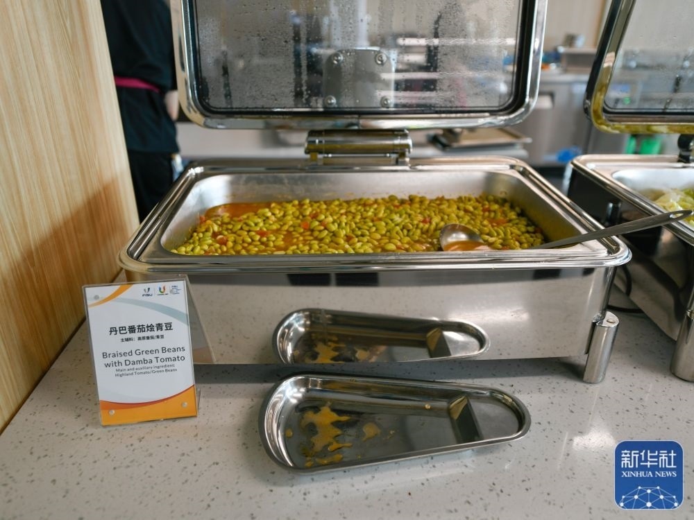 ↑這是7月14日拍攝的成都大運(yùn)會主媒體中心媒體餐廳內(nèi)菜品。新華社記者 胥冰潔 攝