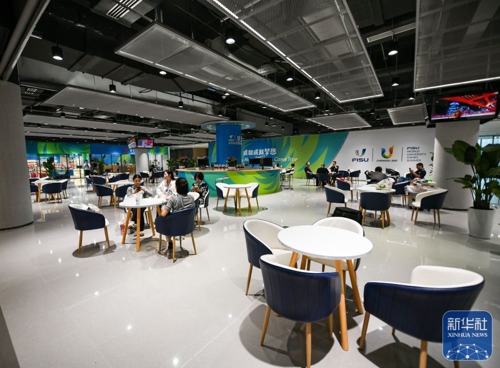 ?↑這是7月13日拍攝的成都大運(yùn)會主媒體中心的會客廳。新華社記者 王曦 攝