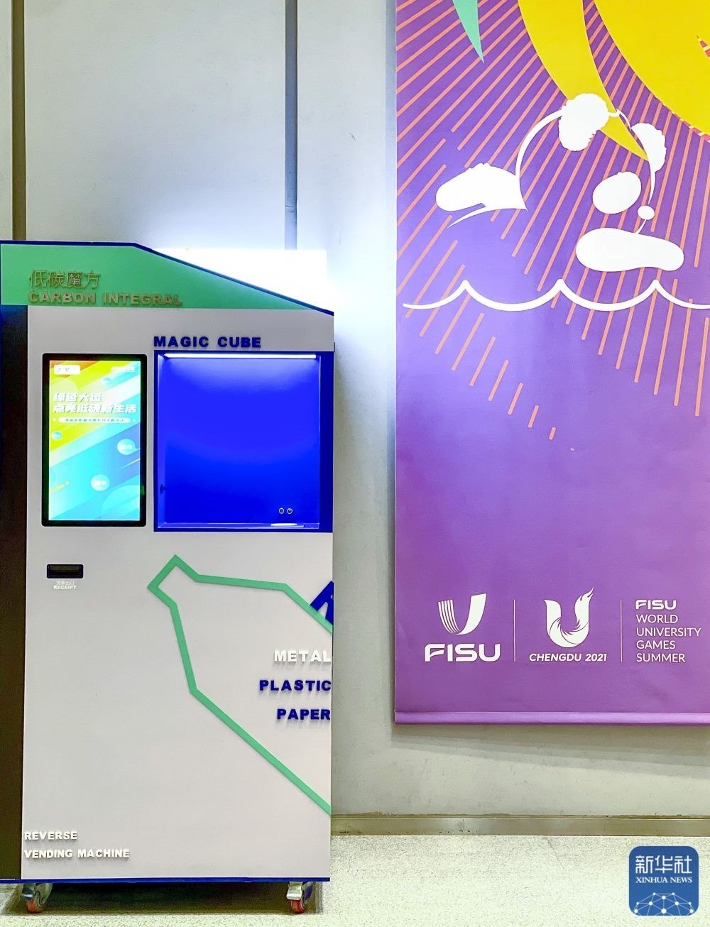 ↑這是6月28日在成都大運(yùn)會開幕倒計時30天活動現(xiàn)場拍攝的“低碳魔方”。新華社記者 沈伯韓 攝