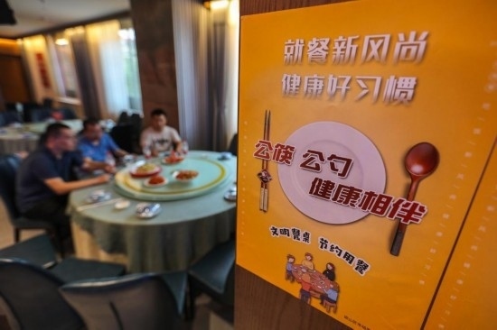 7月11日,記者在河北省邯鄲市邯山區(qū)一家飯店內(nèi)看到張貼的節(jié)儉用餐相關(guān)標(biāo)語(yǔ)。新華社記者 趙鴻宇 攝