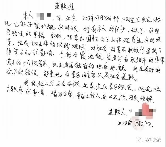 道歉信。微信公眾號(hào)“彩虹張掖”